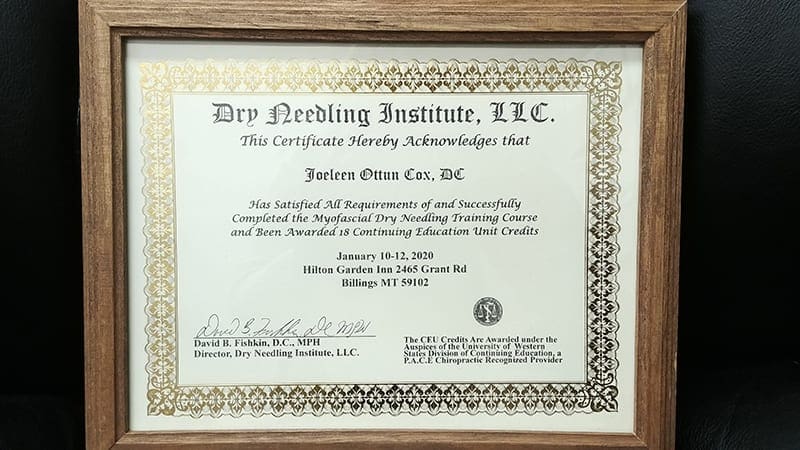 I attended grade school in Rosebud, high school in Forsyth, an undergraduate at Montana State University-Billings, and then chiropractic college at Northwestern College of Chiropractic in Bloomington, Minnesota. After I graduated, I wanted to return to the open spaces of Montana and found the countryside around Billings as a good fit.